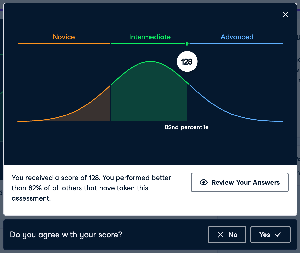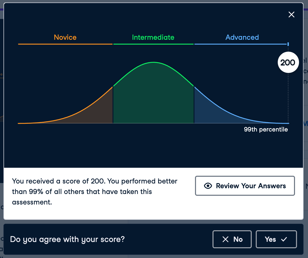 Of course, when I saw these results, the first thing I thought of was — well, that was lucky to get the string of questions that I did. Neurotically choosing to disregard the evidence in the contrary to this, with the following message being displayed prior to the commencement of these skill assessments: ‘The assessments will automatically adapt to your skill level.’