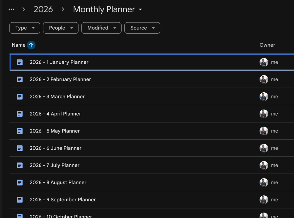 - Allocate a specific space in my Google Drive for these planners, e.g. a parent folder,