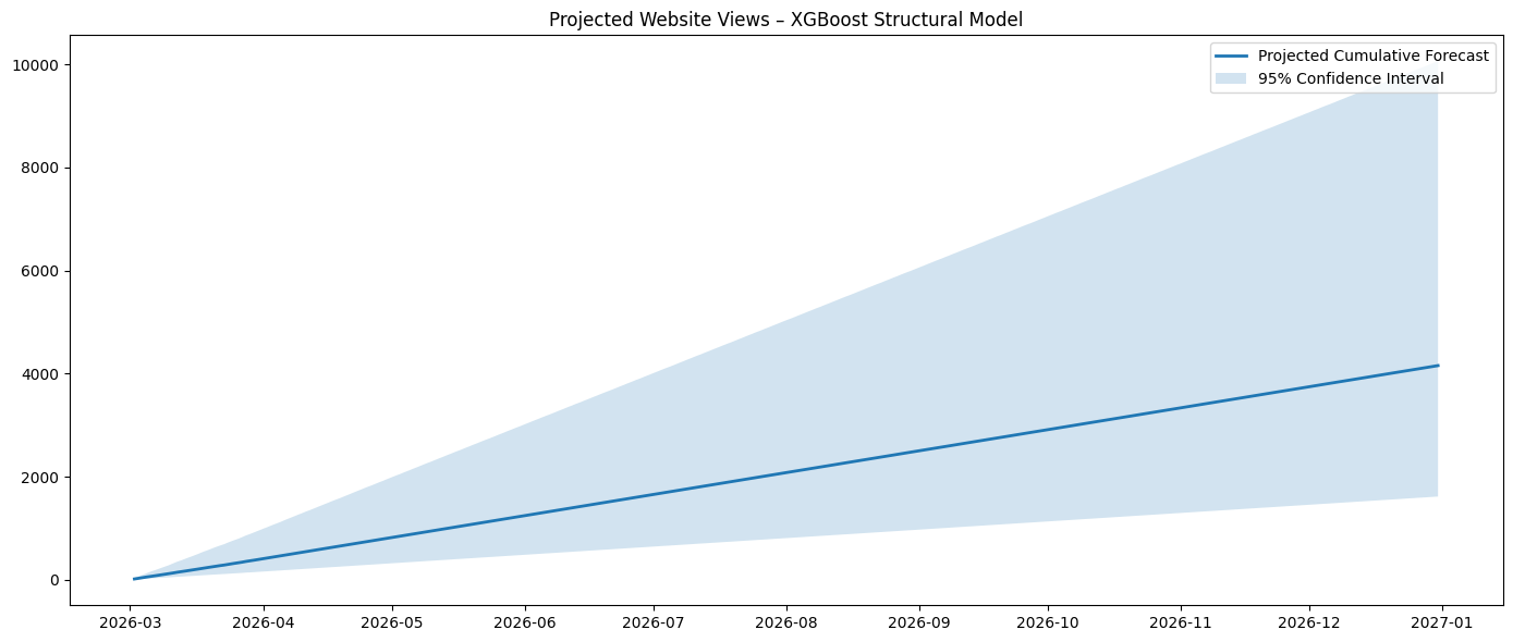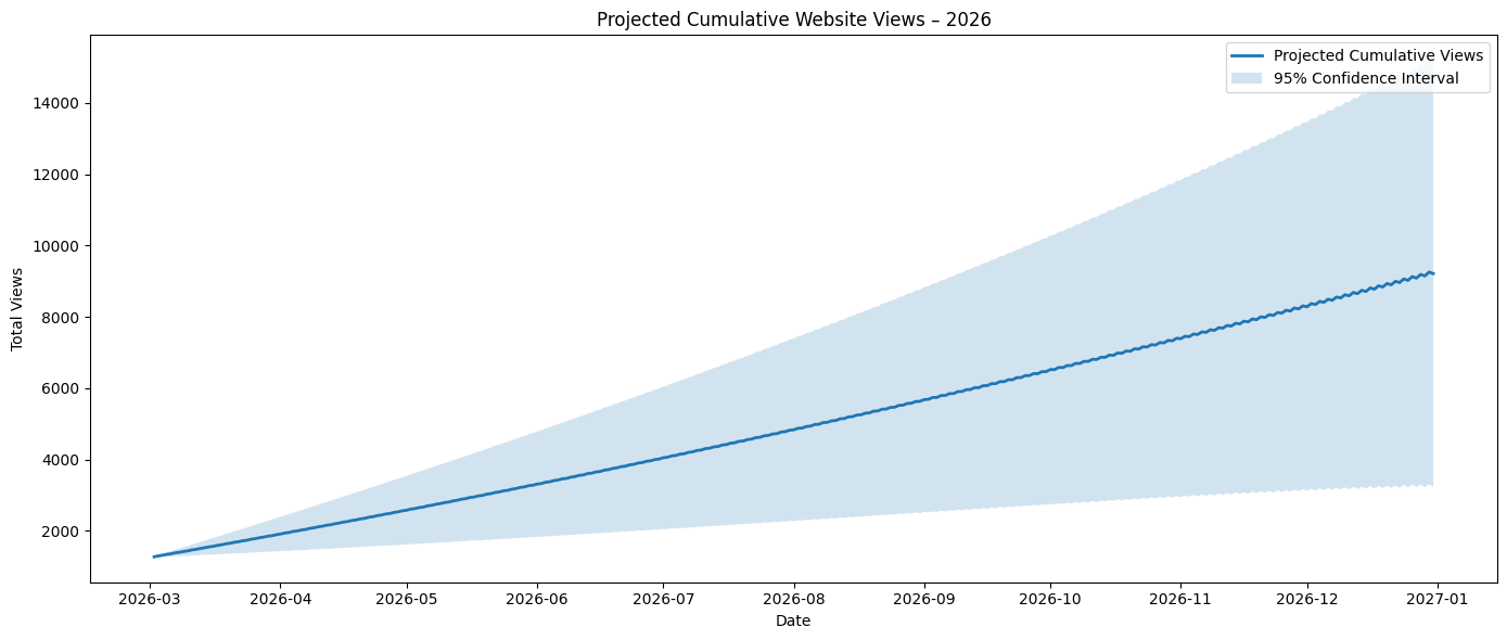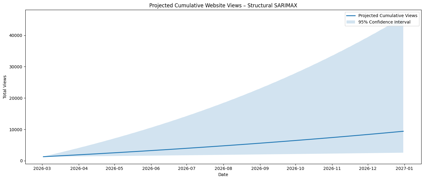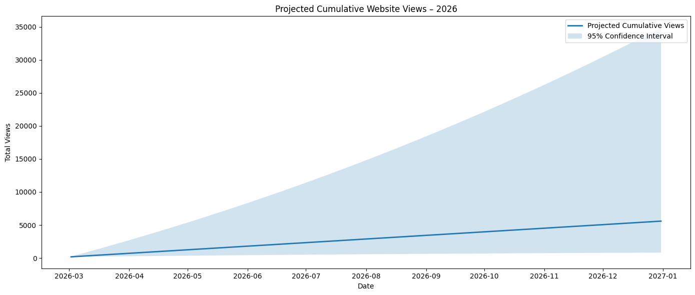 I also attempted a few different libraries on the data that I integrated, specifically prophet and xgboost. I’m going to run them in parallel over the next month to critique their validity, but I observed that, for my use case and current dataset, the confidence intervals (CIs) and forecasted views for prophet were wider and tracking alongside the original model(s), whereas the same aspects for xgboost were narrower CIs but lower (unlikely) view counts for the different time periods.